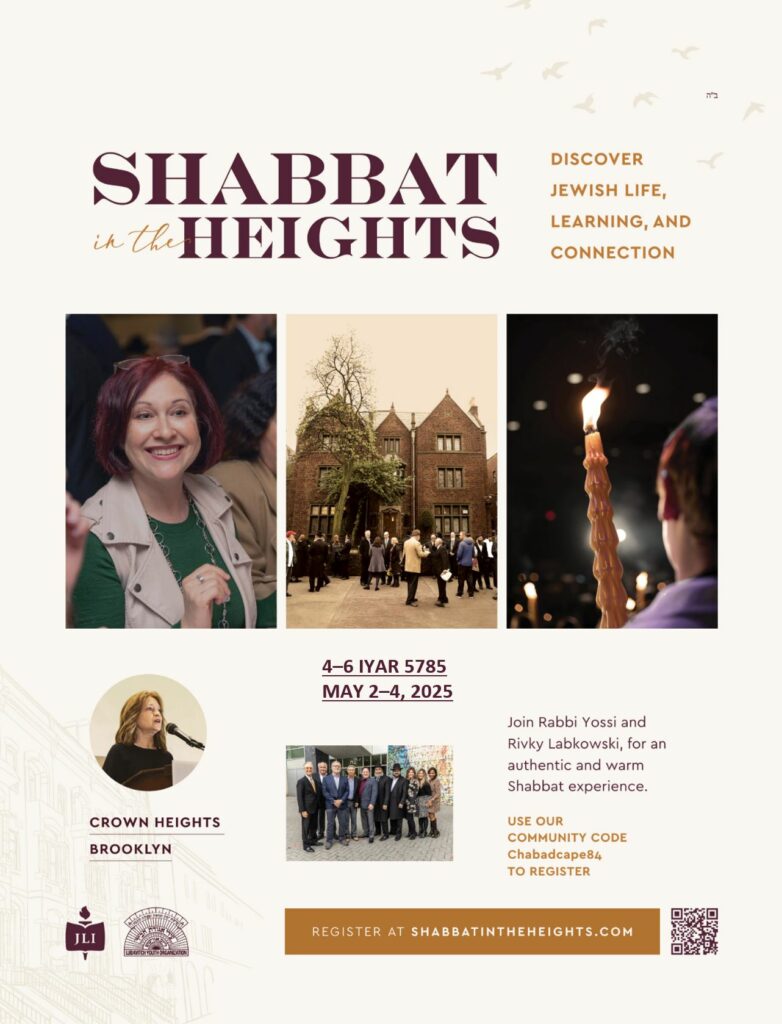 Step into the vibrant world of Crown Heights with an insider’s tour of this historic neighborhood — featuring a visit to the legendary 770, the Rebbe’s Shul and the global headquarters of Chabad-Lubavitch. Your weekend will be enriched with inspiring moments and three gourmet meals daily.